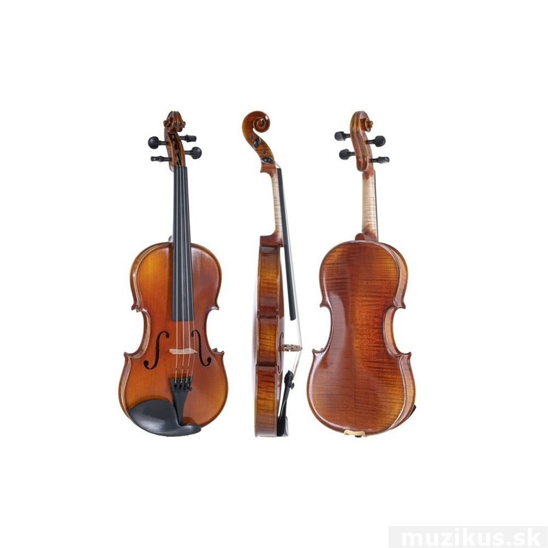 Housle Hratelné provedení, připraveno pro transport European tonewood, hand-selected;Back and sides made of solid EUROPEAN maple, well flamed;Selected solid EUROPEAN spruce top;Fine spirit varnish;Gold-brown, deeply transparent colouring, lightly shaded;Inlaid purfling;Ebony fittings;Milo Stamm bridge;Wittner fine tuning tailpiece (optional);Wittner fine tuning pegs (optional);Larsen Il Cannone strings for 4/4 / Larsen Aurora strings for 3/4-1/4 (optional);Ebony chinrest;Rosin (optional);Massaranduba/Carbon bow/GEWA Baron bow/GEWA Carbon bow Advanced with natural hair (optional);Violin shaped case/oblong case with screw-on cover, backpack straps and reflectors (optional) or respectively GEWA BIO violin shaped case/GEWA BIO oblong case with music pocket;Slight colour deviation possible due to hand varnishing;Not set up: Without label; all other versions with label;"without label" on request: info required;